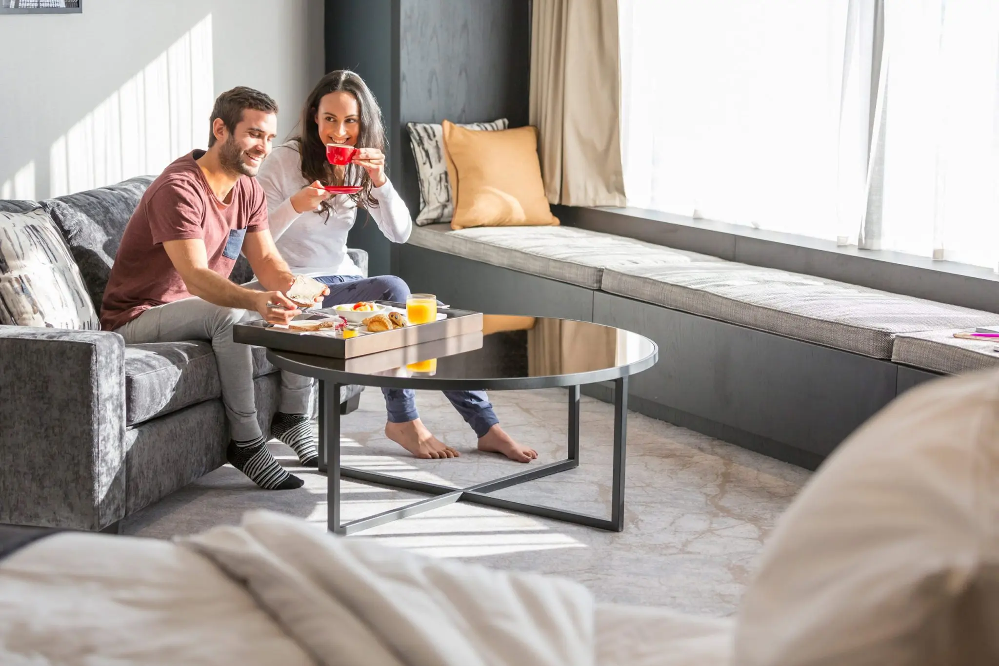 You can enjoy classic modern décor complemented by a marble bathroom with luxury amenities, including bathrobes, slippers, and dual head showers. All of our suites feature a coffee machine and a 40″ smart TV for when you want to stay in.